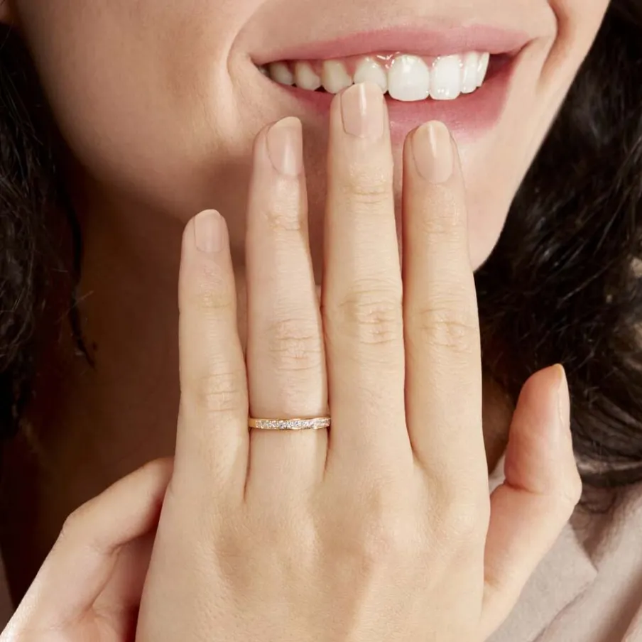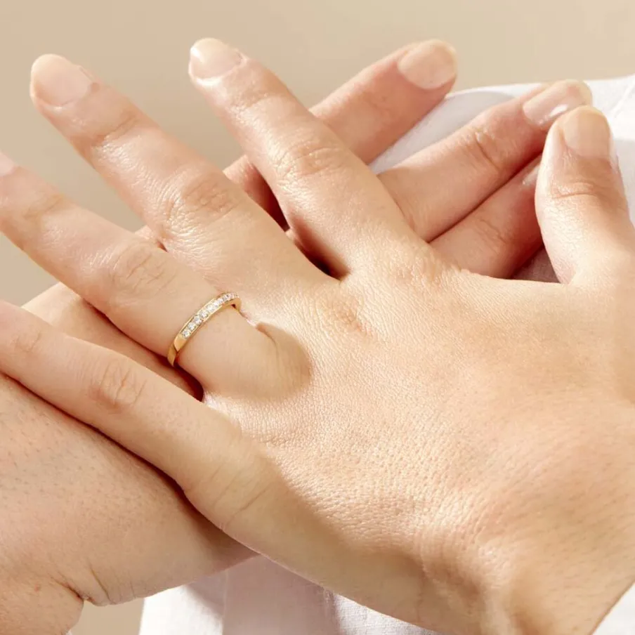 Demi Alliance Or Jaune 750/1000 Diamants 0.20cts Sertis Grain