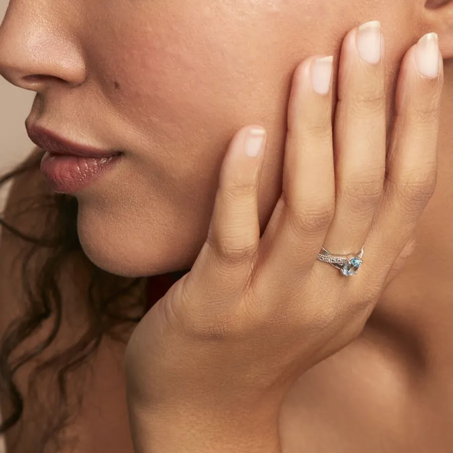 Bague Or Blanc 375/1000 Croisee Topaze Ovale Serti Griffes