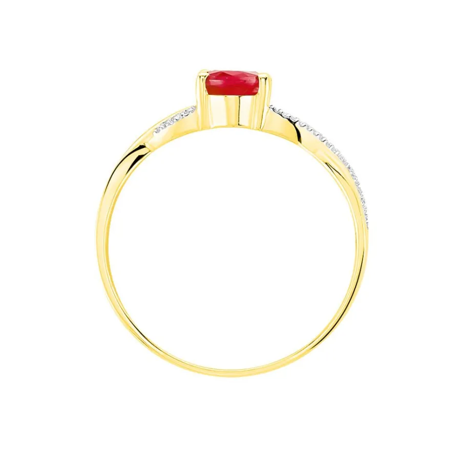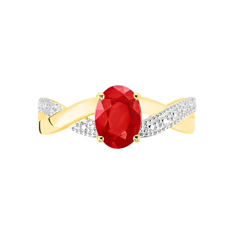 Bague Or Jaune 375/1000 Croisee Rubis Oval Serti Griffes