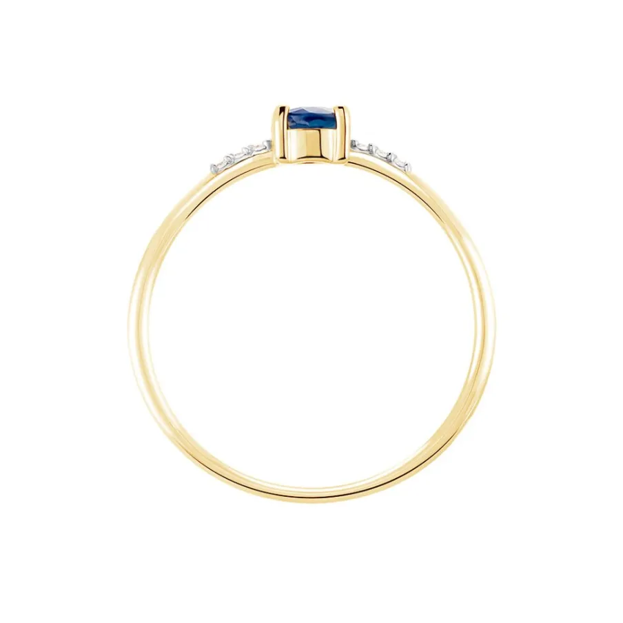Bague Or Jaune 375/1000 Saphir Central Serti 4 Griffes Accompagne Diamants