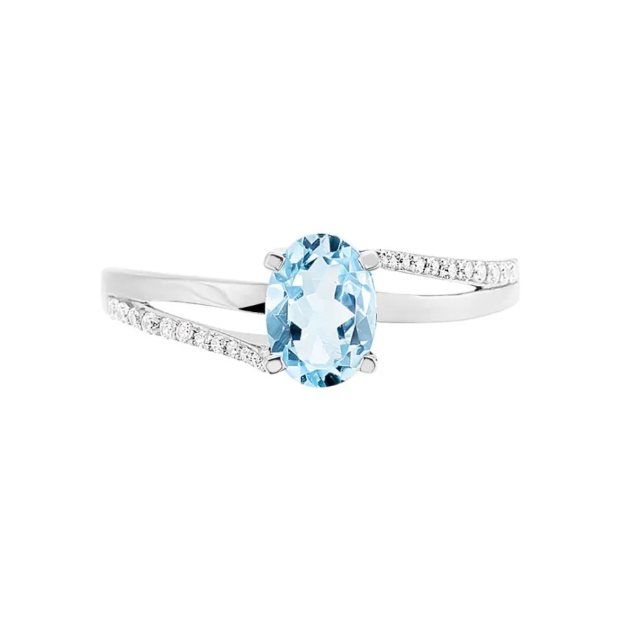 Bague Or Blanc 375/1000 Topaze Ovale Corps De Bague Pavage Oxydes De Zirconium
