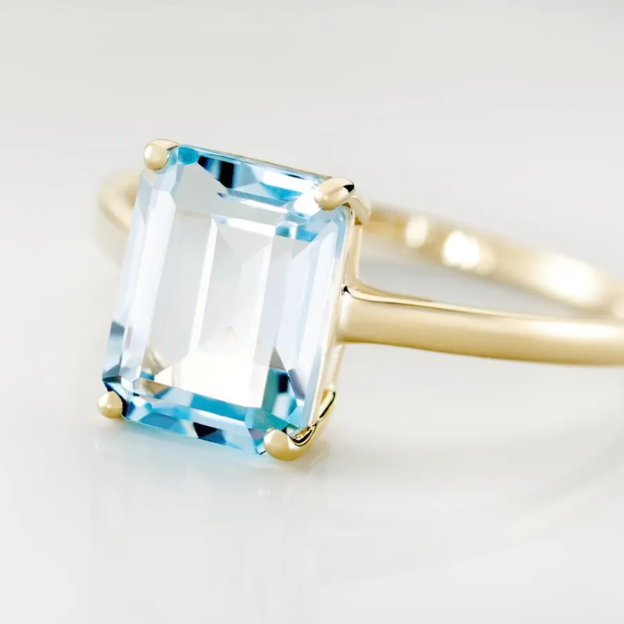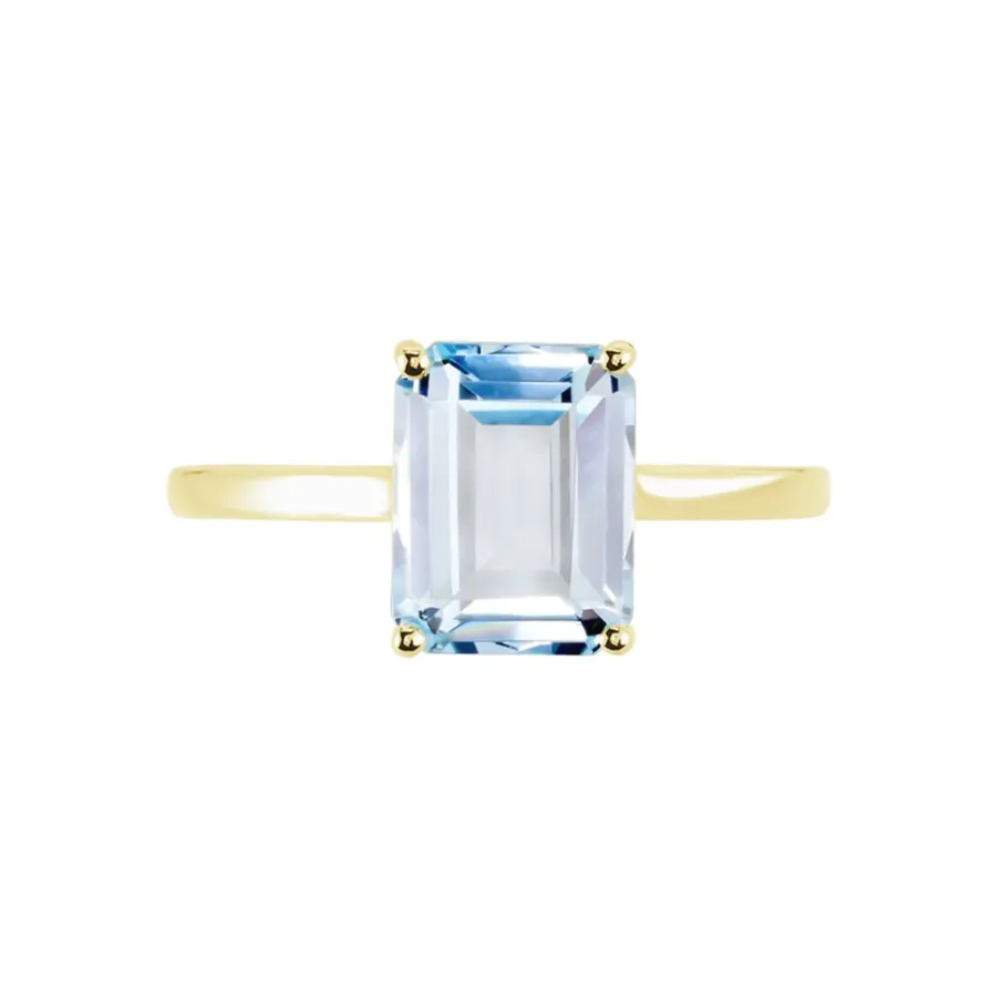 Bague Or Jaune 375/1000 Topaze Bleu Sky 3.2 Cts Serti Griffes