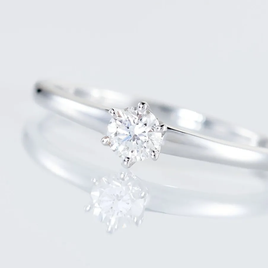 Solitaire Or Blanc 750/1000 Diamant Central 0.20cts Serti 6 Griffes