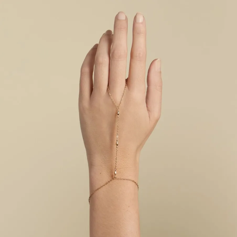 Bijou De Main Acier Inoxydable Jaune Motifs Losanges Chaine Maille Forçat 17+3cm