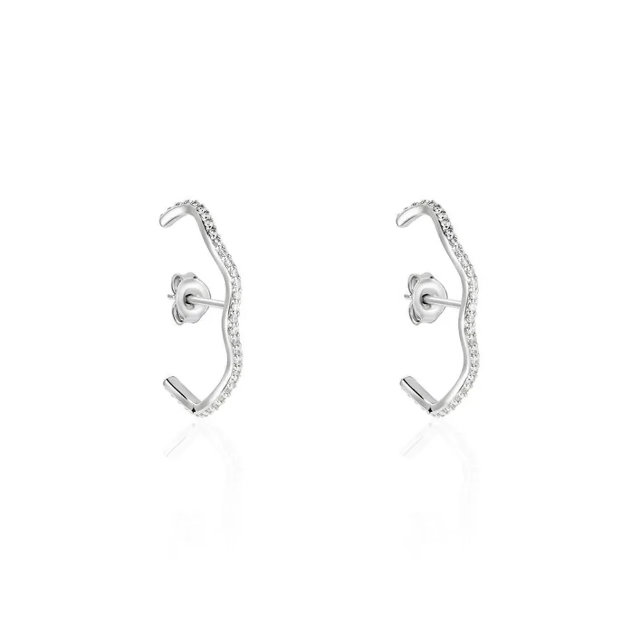 Boucles D’oreilles Argent 925/1000 Effet Manchettes De Lobe Pavage Oxydes De Zirconium 21.7mm