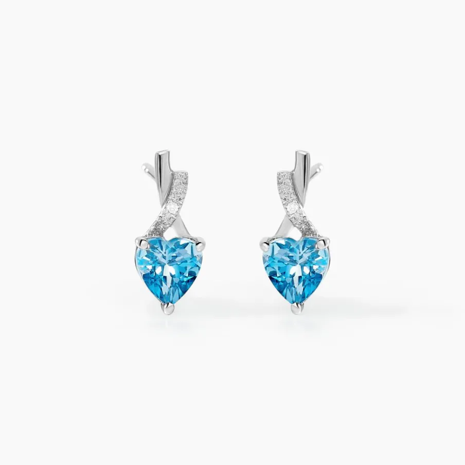 Boucles D’oreilles Or Blanc 375/1000 Topazes London Blue Formes C艙urs Et Oxydes De Zirconium