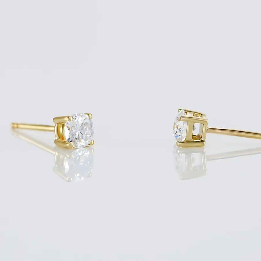 Boucles D’oreilles Or Jaune 750/1000 Puces Diamants Synthetique 0.60cts Sertis 4 Griffes Systemes Alpas