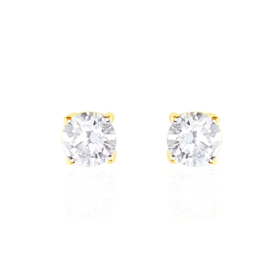 Boucles D’oreilles Or Jaune 750/1000 Puces Diamants Synthetique 0.50cts Sertis 4 Griffes Systemes Alpas