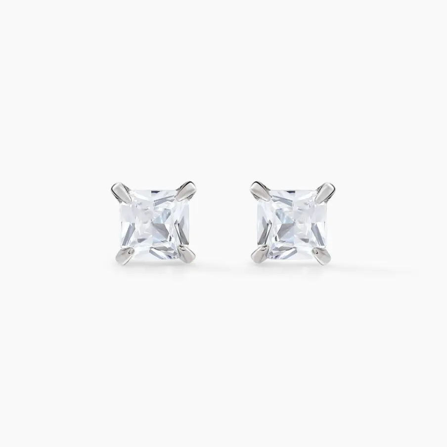 Boucles D’oreilles Puces Argent Blanc 925/1000 Oxyde De Zirconium Carré Serti 4 Griffes 4mm