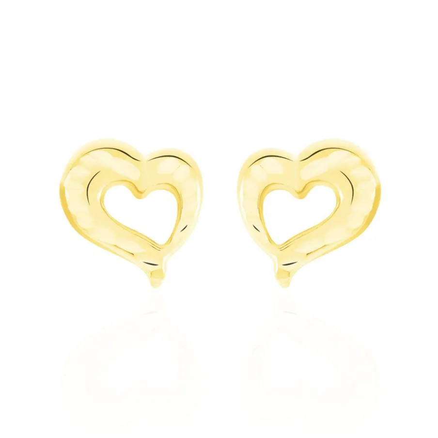 Boucles D’oreilles Or Jaune 375/1000 Forme C艙ur Effet Diamante