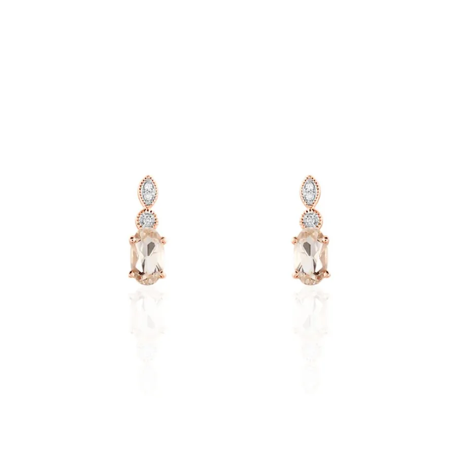 Boucles D’oreilles Or Rose 375/1000 Puces Morganite Centrale Avec Diamants