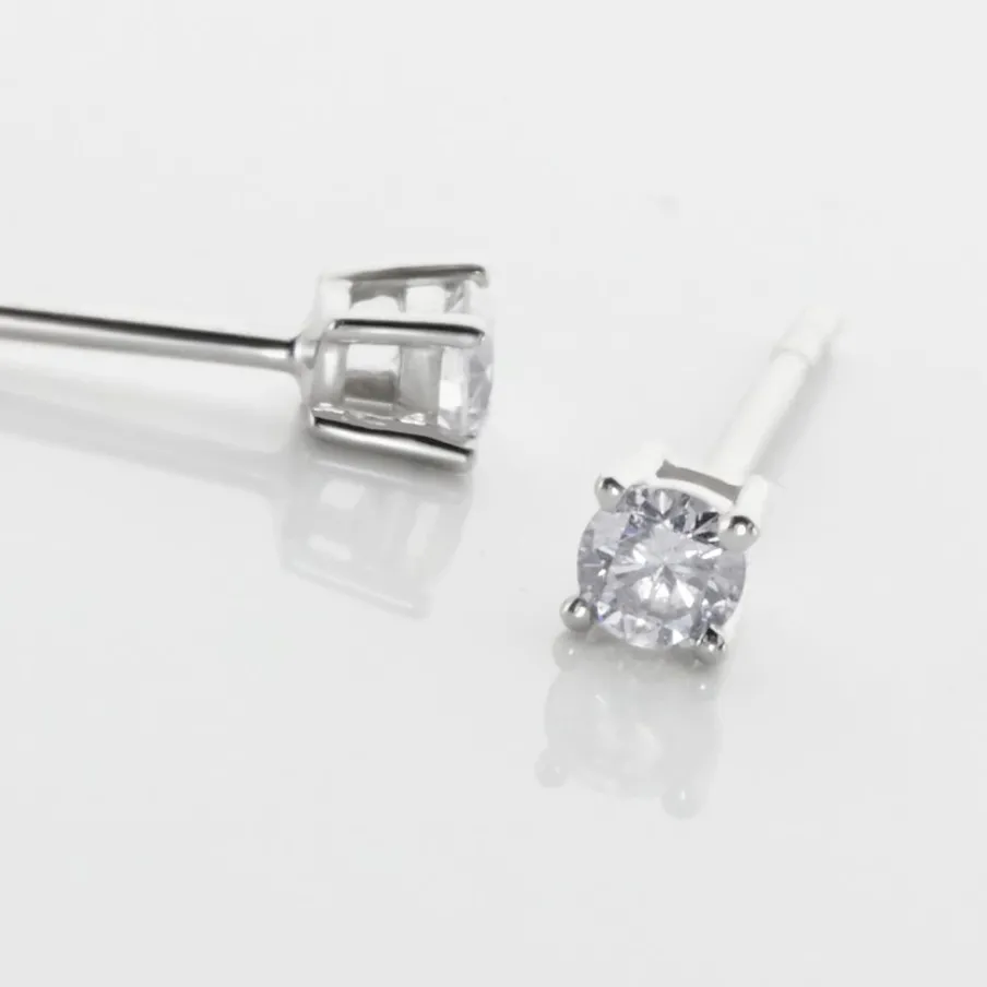 Boucles D’oreilles Or Blanc 375/1000 Puces Diamants 0.15cts Serti 4 Griffes