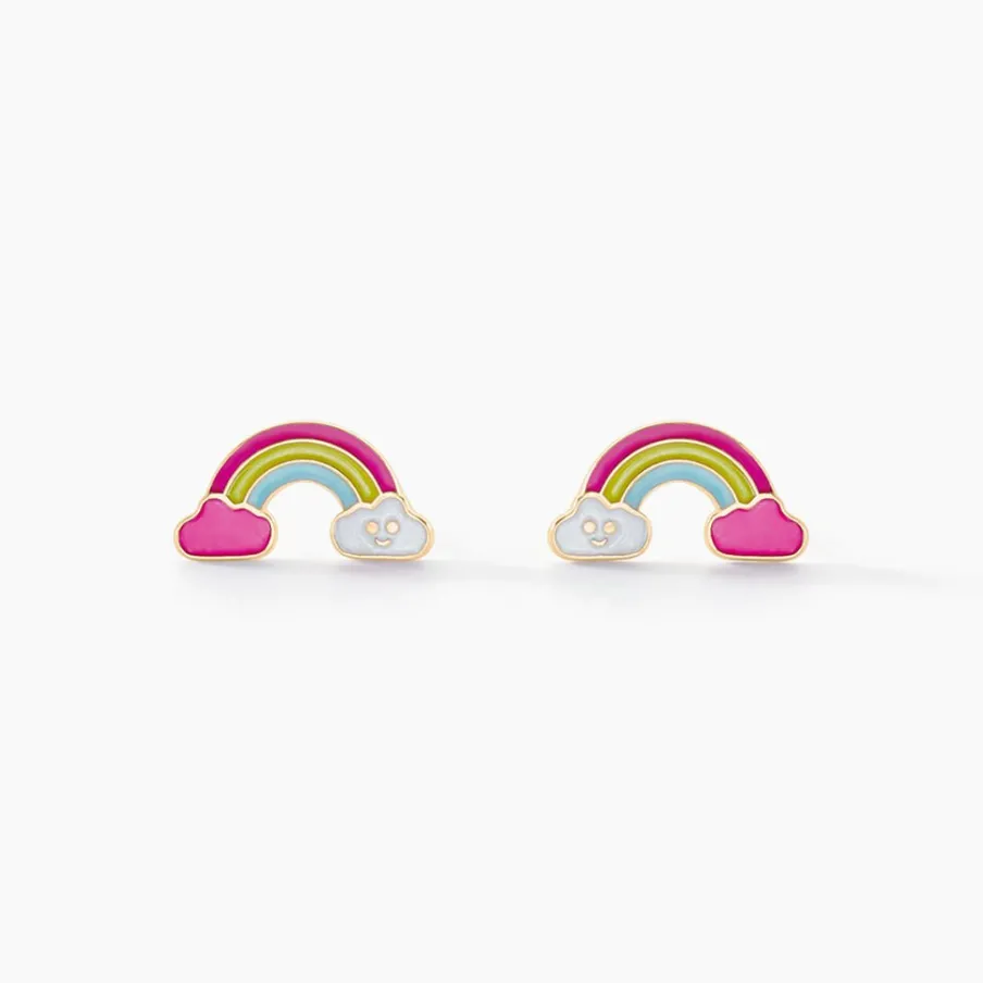 Boucles D’oreilles Puces Or Jaune 375/1000 Arc En Ciel Email Multicolore