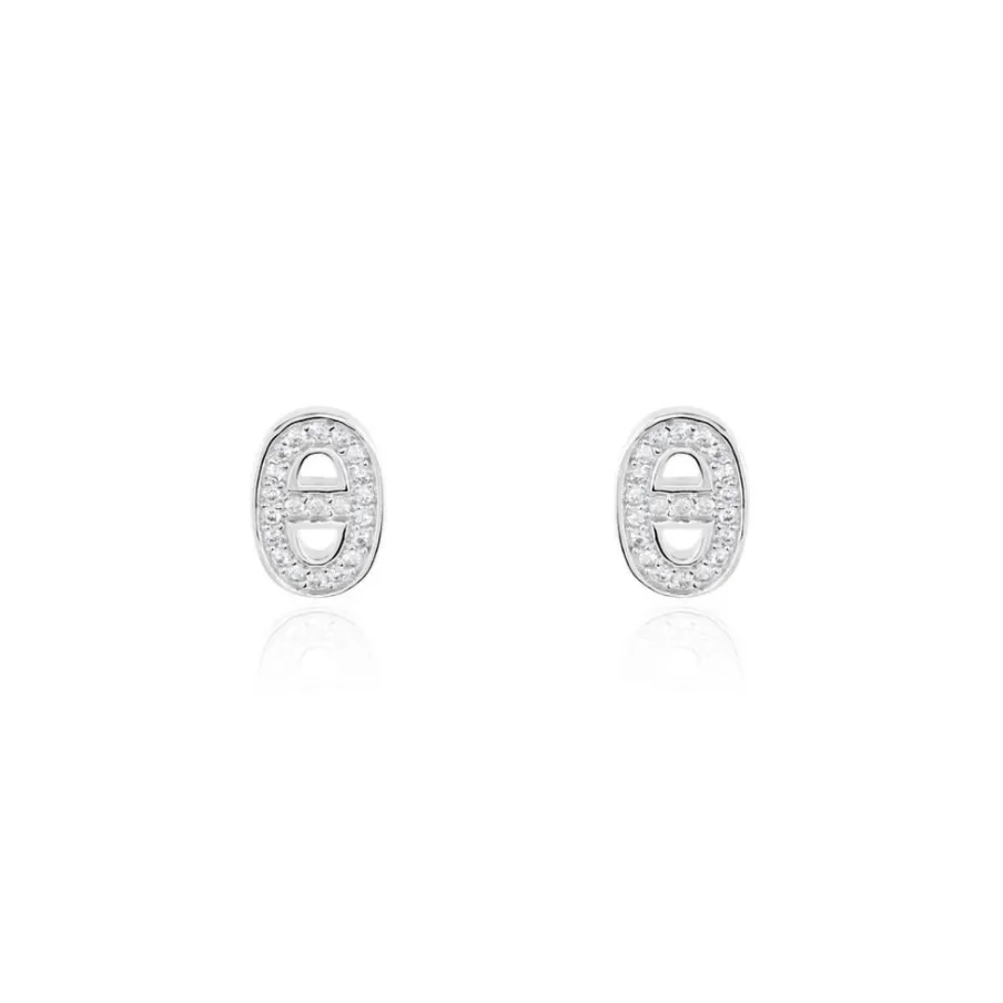 Boucles D’oreilles Puces Argent Blanc 925/1000 Maillon Pavage Oxydes De Zirconium