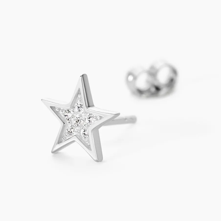 Boucles D’oreilles Puces Argent Blanc 925/1000 Etoiles Pavage Oxydes De Zirconium