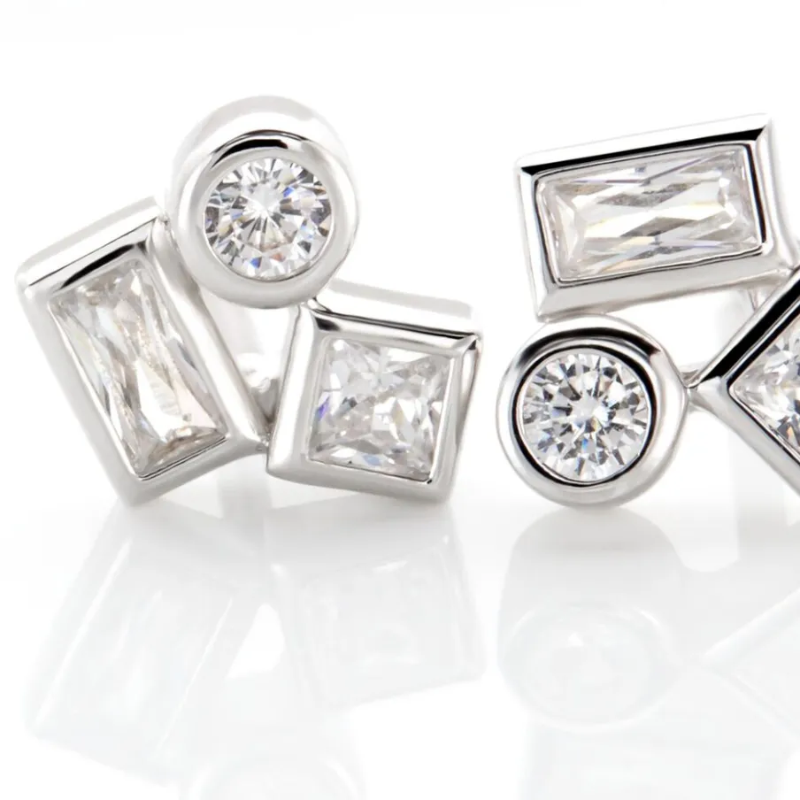 Boucles D’oreilles Puces Argent 925/1000 Formes Géometriques Micro Serti Oxydes De Zirconium
