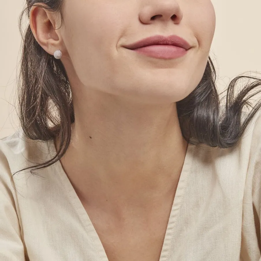 Boucles D’oreilles Puces Argent Blanc 925/1000 Boules Effet Diamante 8mm