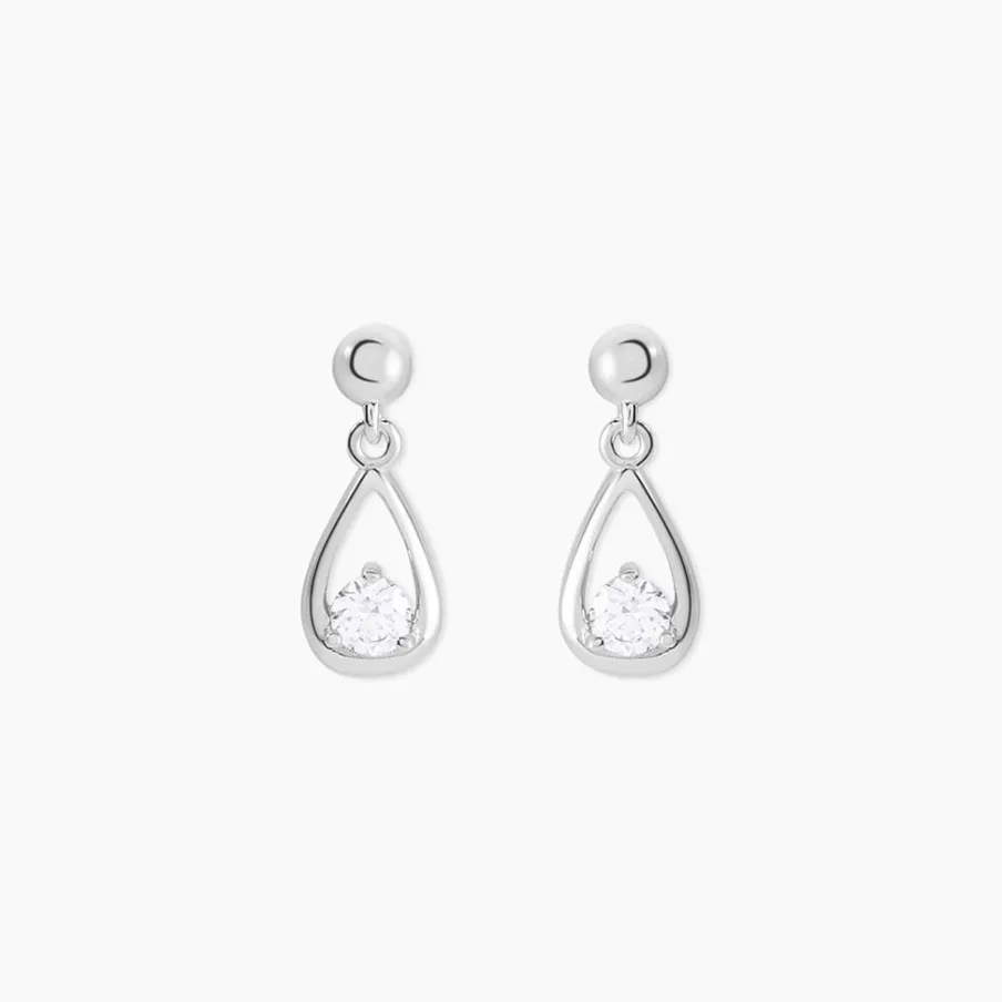Boucles D’oreilles Puces Argent Blanc 925/1000 Formes Gouttes Et Oxydes De Zirconium