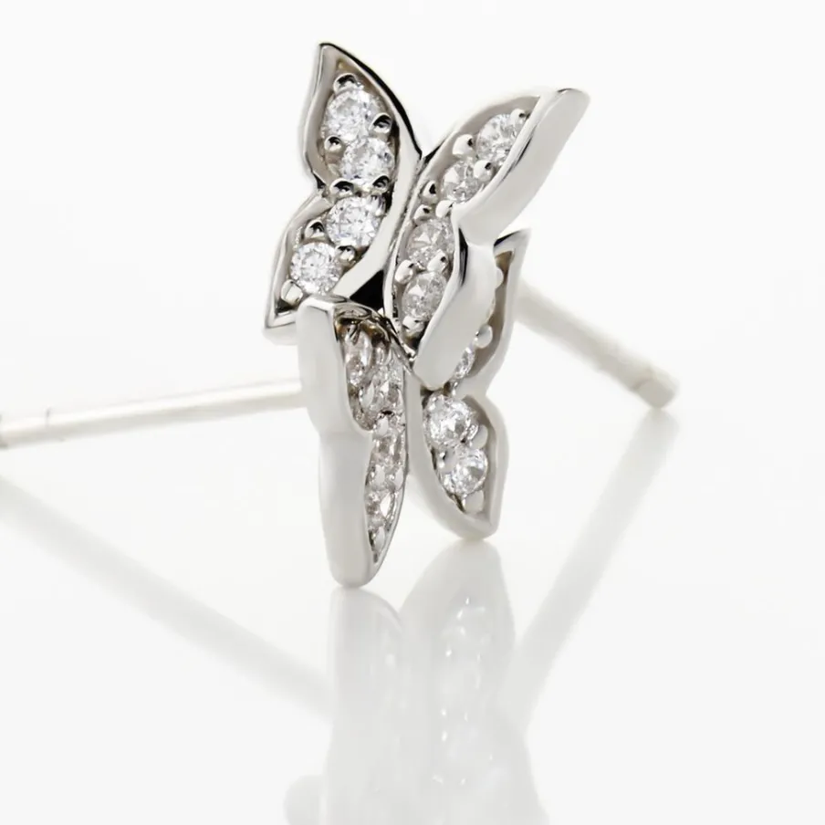 Boucles D’oreilles Puces Argent Blanc 925/1000 Papillons Pavage Oxydes De Zirconium