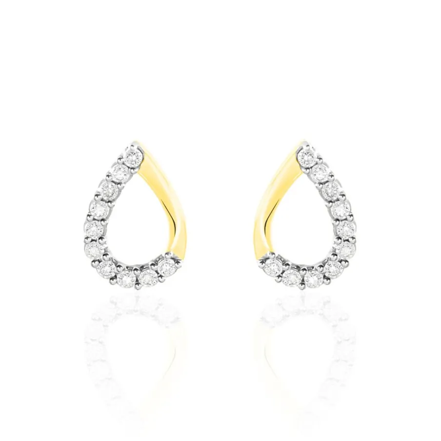 Boucles D’oreilles Or Jaune 375/1000 Formes Gouttes Diamants