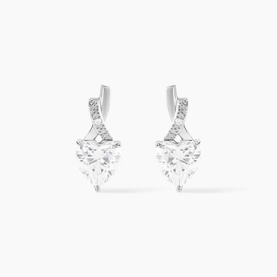 Boucles D’oreilles Pendantes Or Blanc 375/1000 C艙ur Oxydes De Zirconium Blanc Serti Griffes