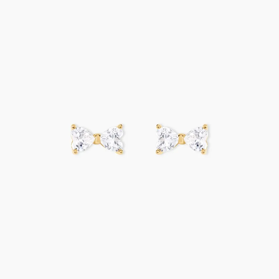 Boucles D’oreilles Or Jaune 375/1000 Formes N艙uds Oxydes De Zirconium