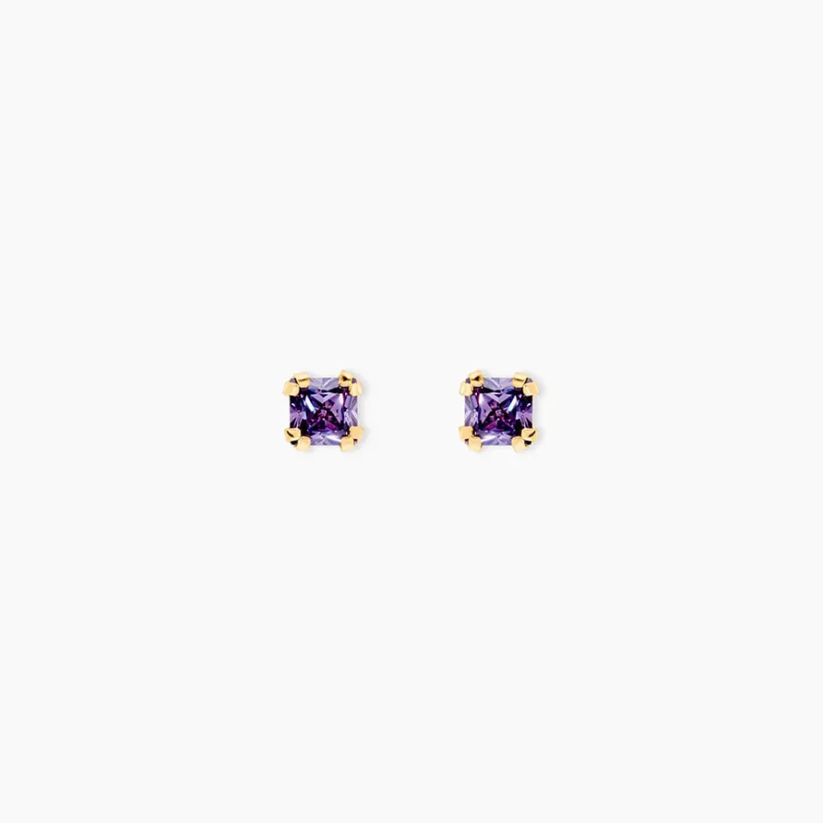 Boucles D’oreilles Or Jaune 375/1000 Puce Oxydes De Zirconium Violets Carres 3mm