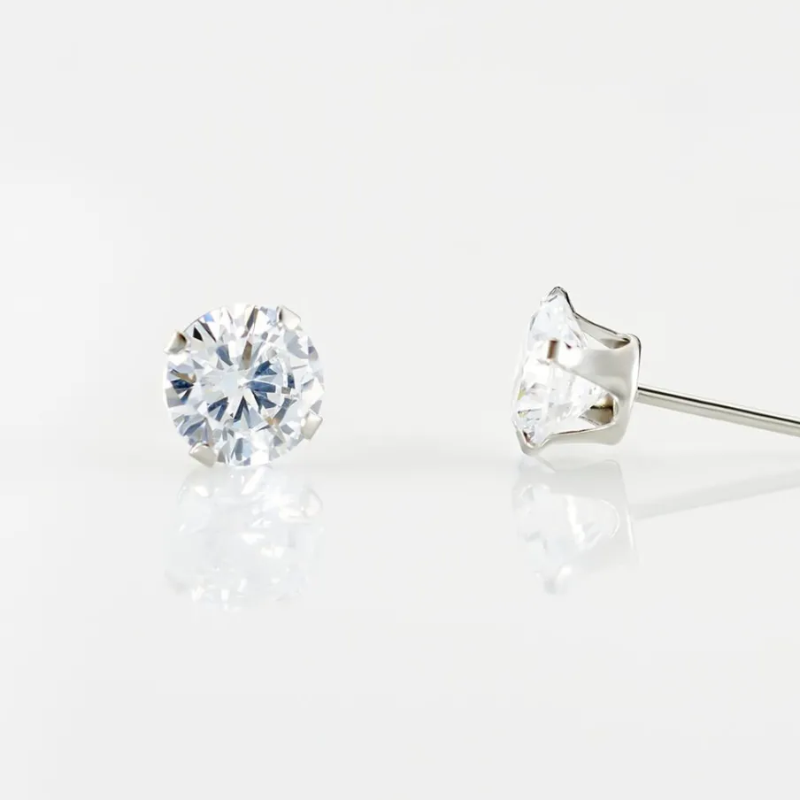 Boucles D’oreilles Or Blanc 375/1000 Puces Oxydes De Zirconium 5mm