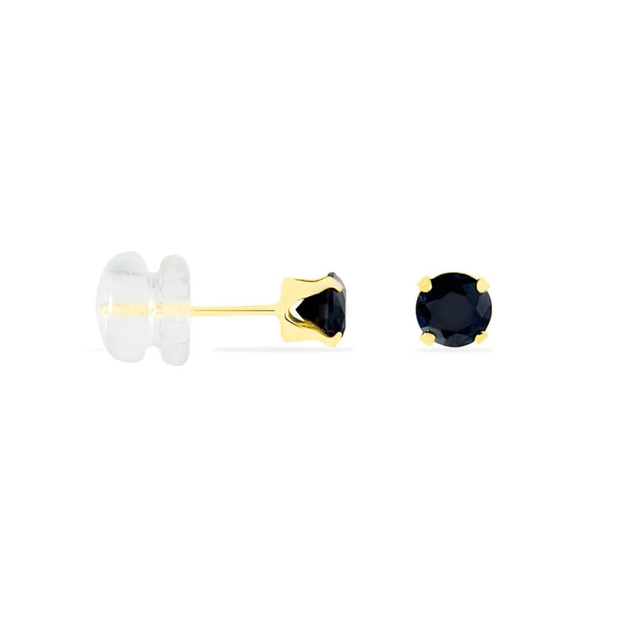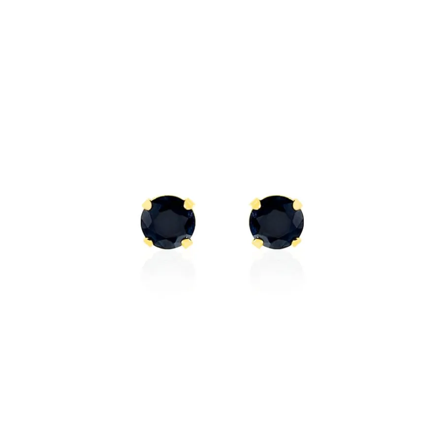 Boucles D’oreilles Or Jaune 375/1000 Puce Saphir 4mm
