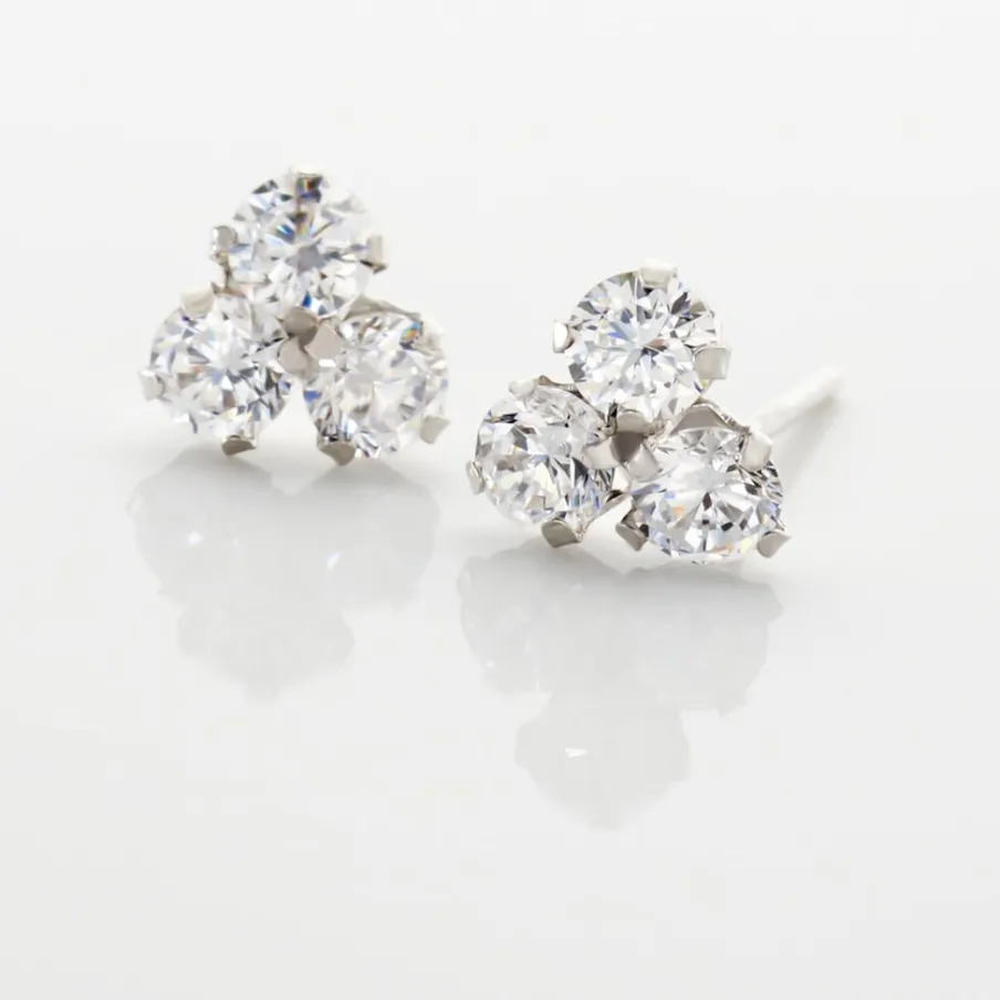Boucles D’oreilles Or Blanc 375/1000 3 Oxydes De Zirconium 2.5mm