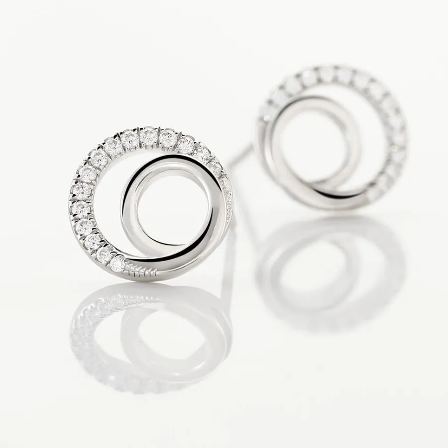 Boucles D’oreilles Puces Argent Blanc 925/1000 Formes Tourbillons Pavages Oxydes De Zirconium