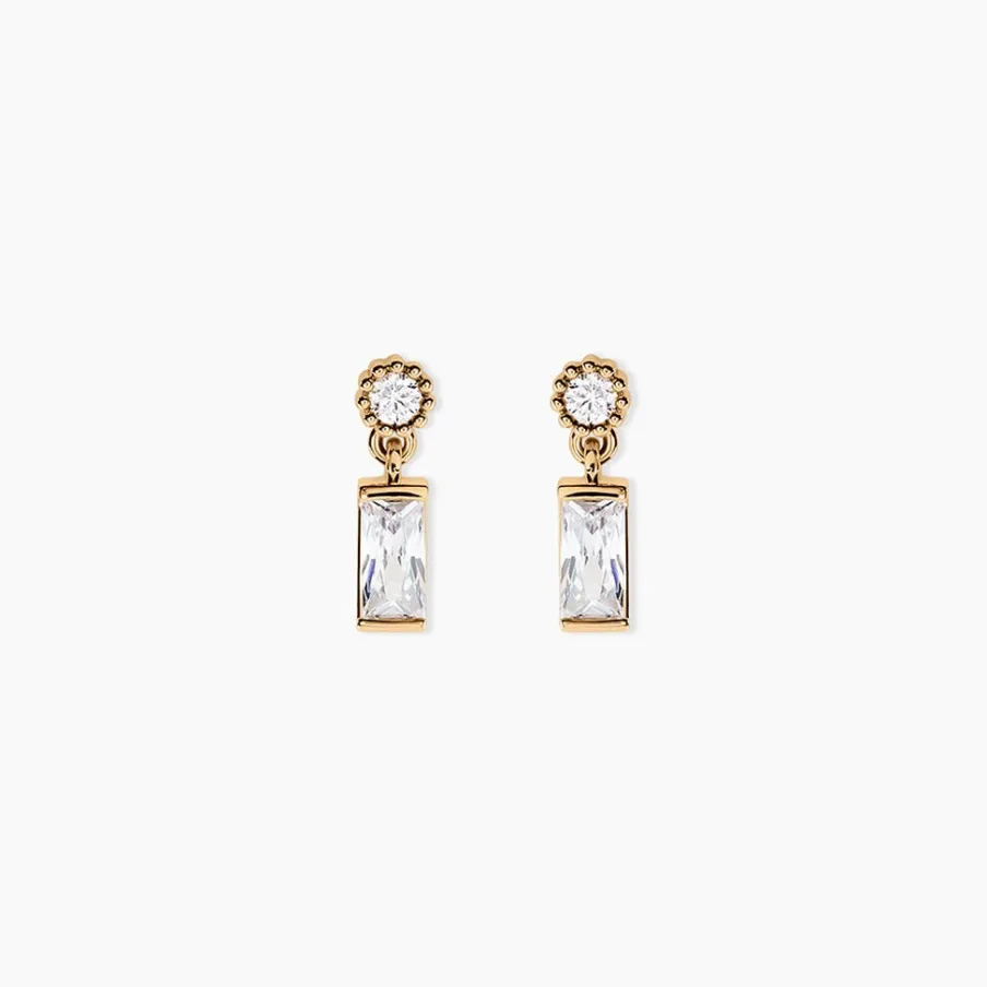 Boucles D’Oreilles Puces Plaqué Or Jaune Oxydes De Zirconium Tailles Baguettes Et Rondes 1,3Cm