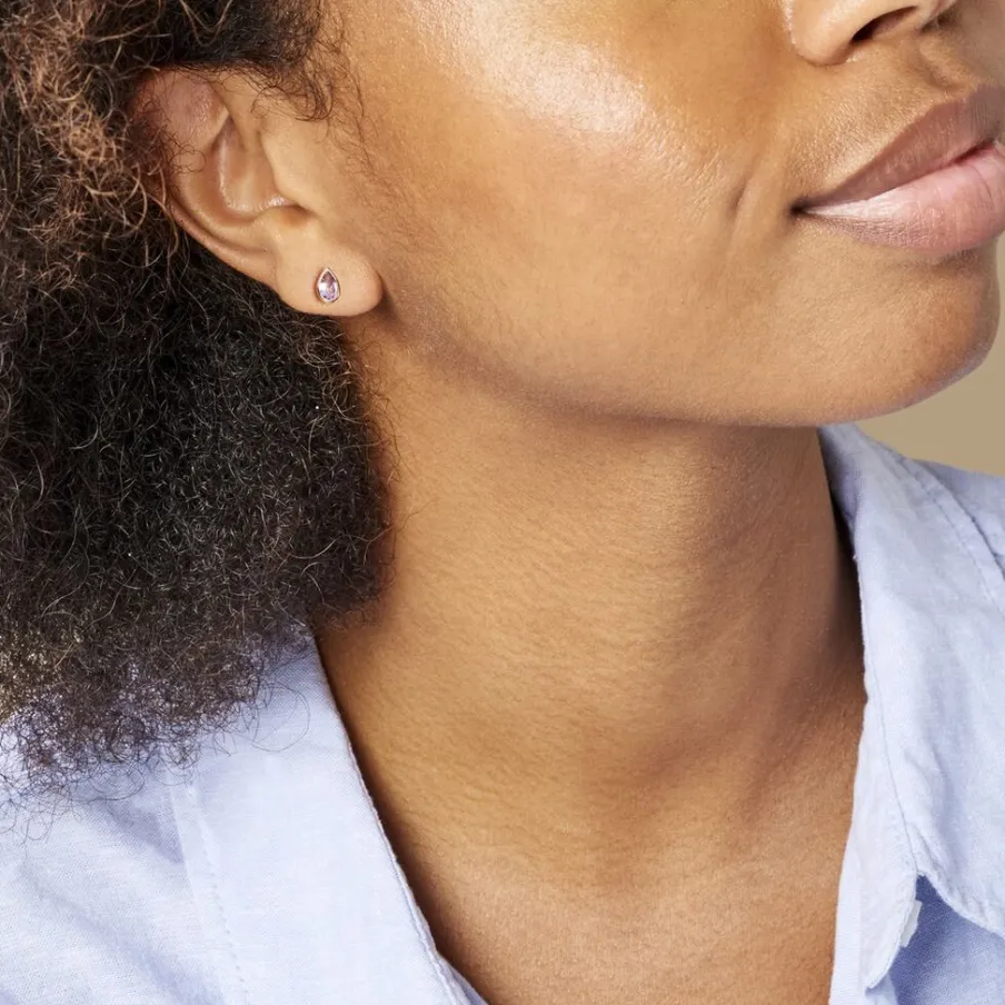 Boucles D’oreilles Puces Or Jaune 375/1000 Améthystes Serties Clos Formes Poires