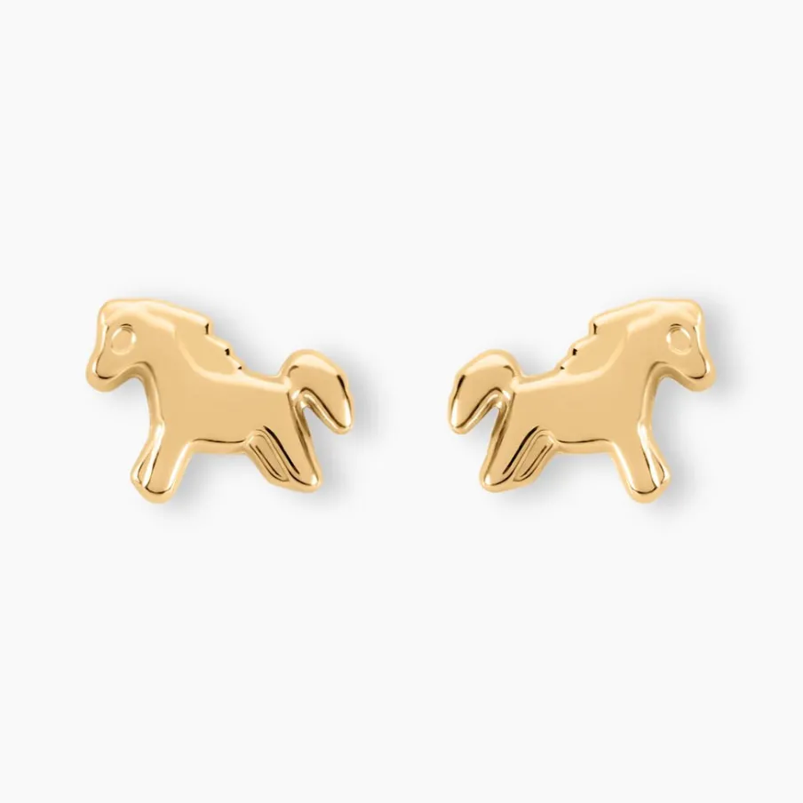 Boucles D’oreilles Or Jaune 375/1000 Puces Chevaux