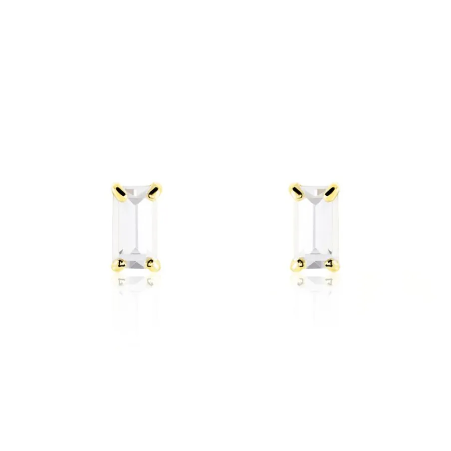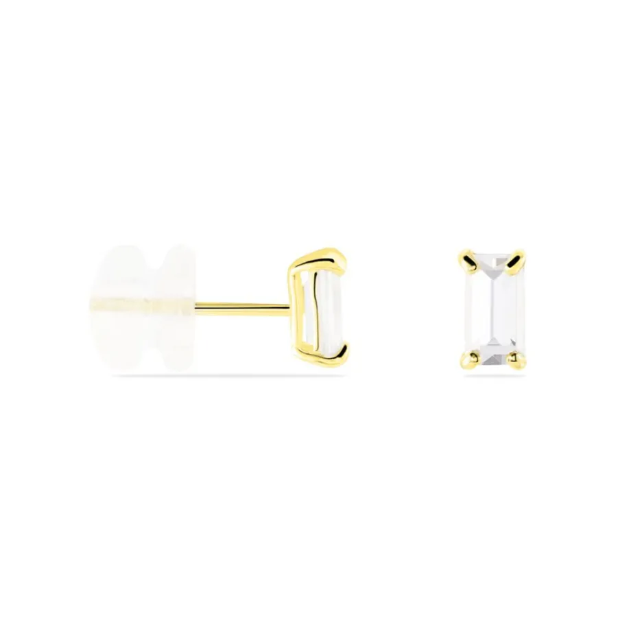 Boucles D’oreilles Puces Or Jaune 375/1000 Rectangles Serti Griffes Oxydes De Zirconium 3x5mm