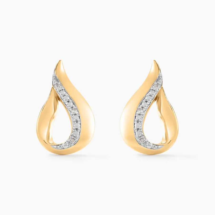Boucles D’oreilles Puces Or Jaune 375/1000 Et Diamants Goccie