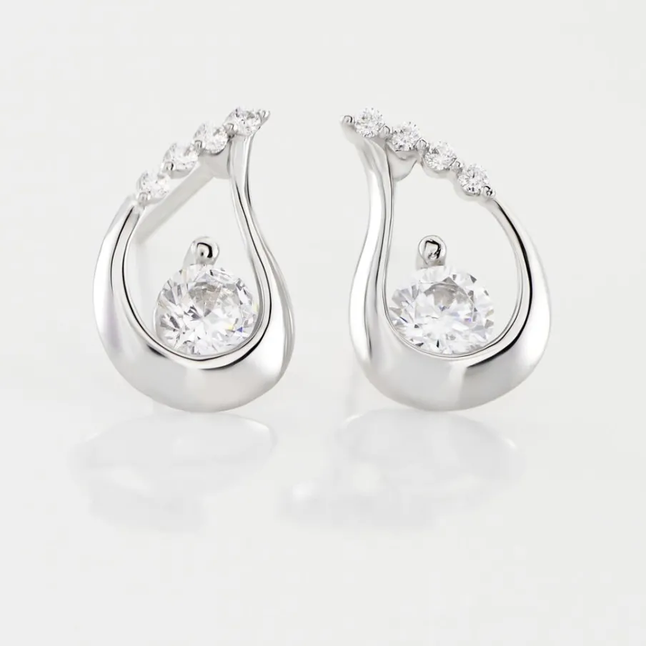 Boucles D’oreilles Puce Or Blanc 375/1000 Goutte Oxydes De Zirconium