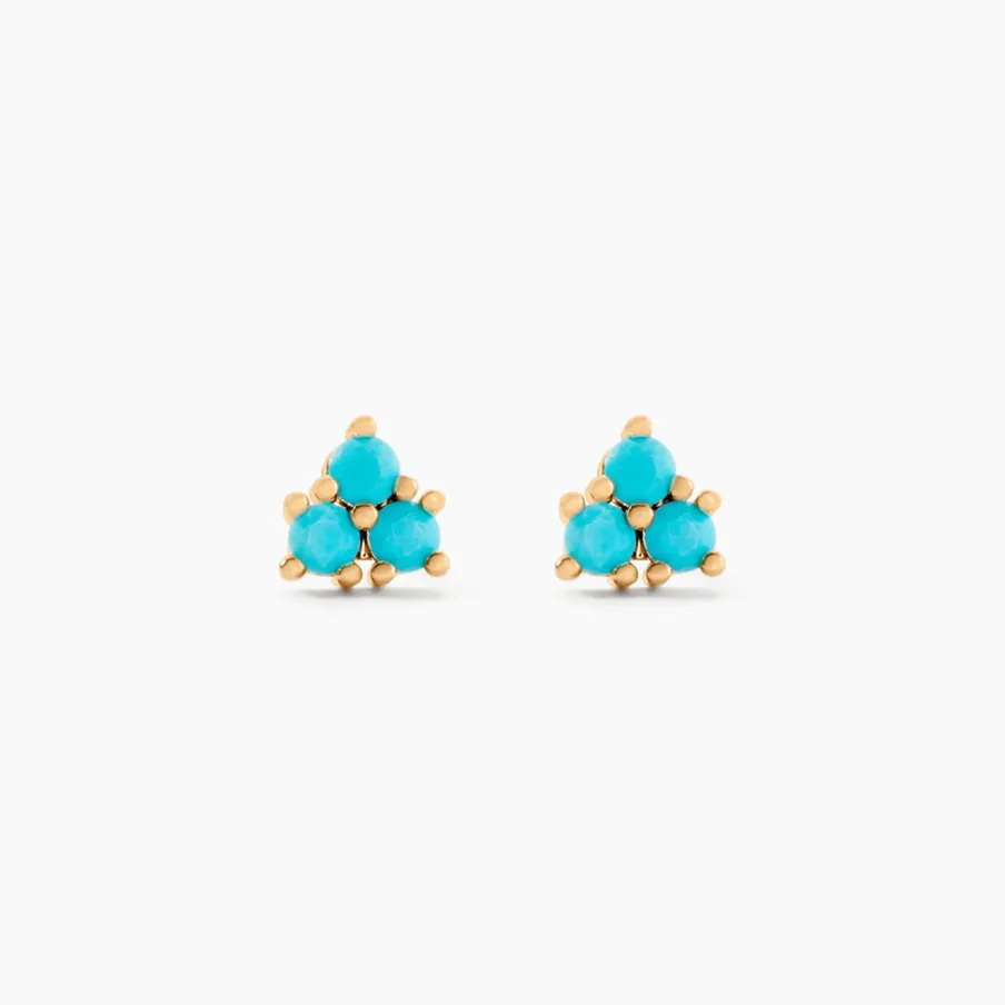 Boucles D’oreilles Puces Plaqué Or Jaune Trio Pierres De Synthese Turquoise