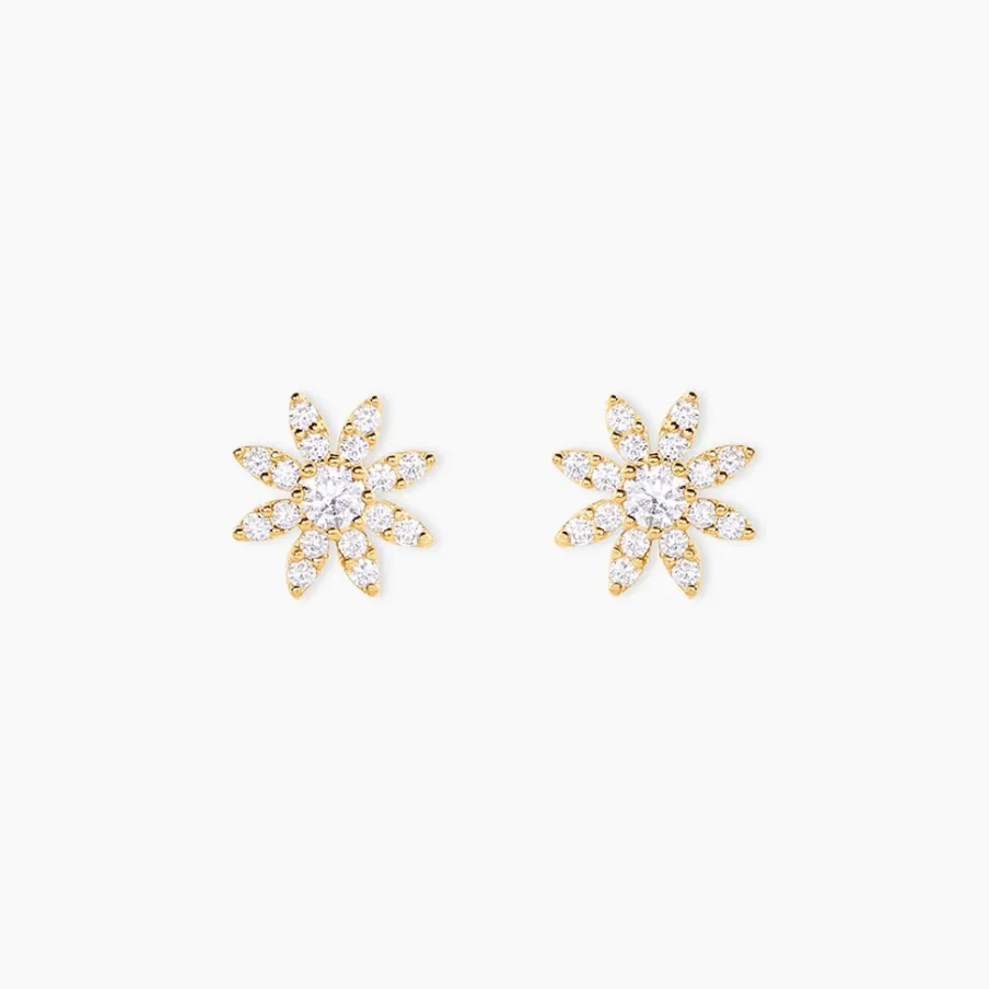 Bo Puces Or Jaune 750/1000 Soleil Oxyde De Zirconium Blanc Serti 8 Griffes