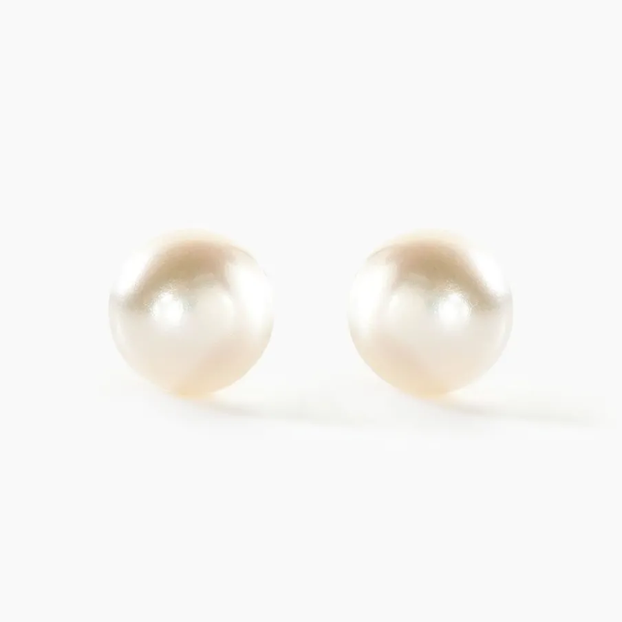 Boucles D’oreilles Or Jaune 375/1000 Perles De Culture Nacres Forme Bouton 6/6.5mm
