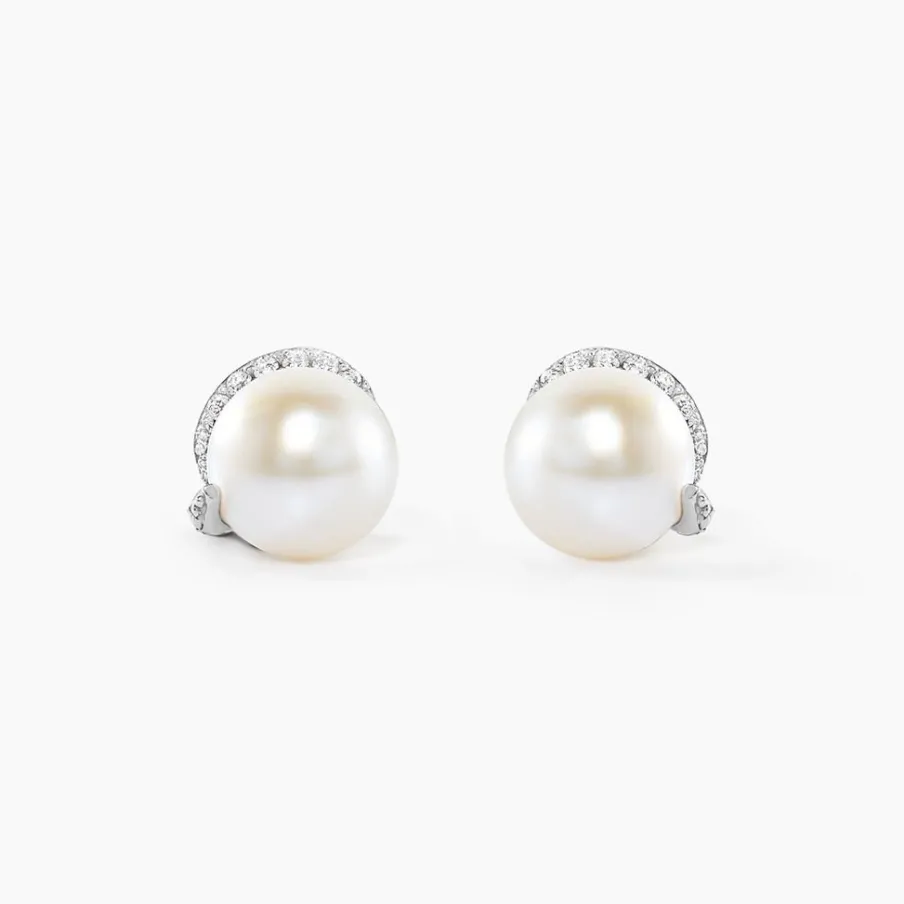 Boucles D’oreilles Or Blanc 375/1000 Puces Perles De Culture 7mm Spirale Oxydes De Zirconium