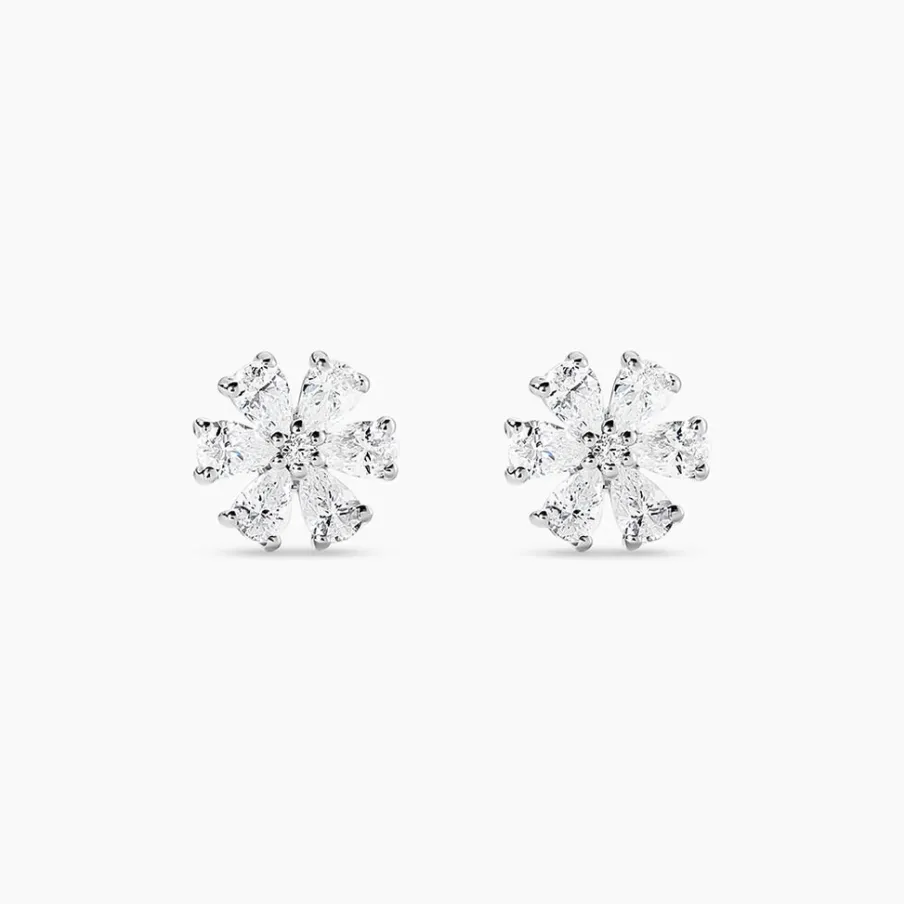 Boucles D’oreilles Or Blanc 375/1000 Puces Motifs Poire Et Rond Oxydes De Zirconium