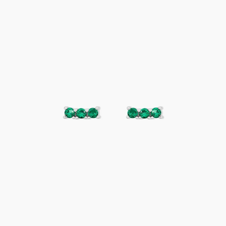 Boucles D’oreilles Puces Argent Blanc 925/1000 Trilogie Spinelles Vertes