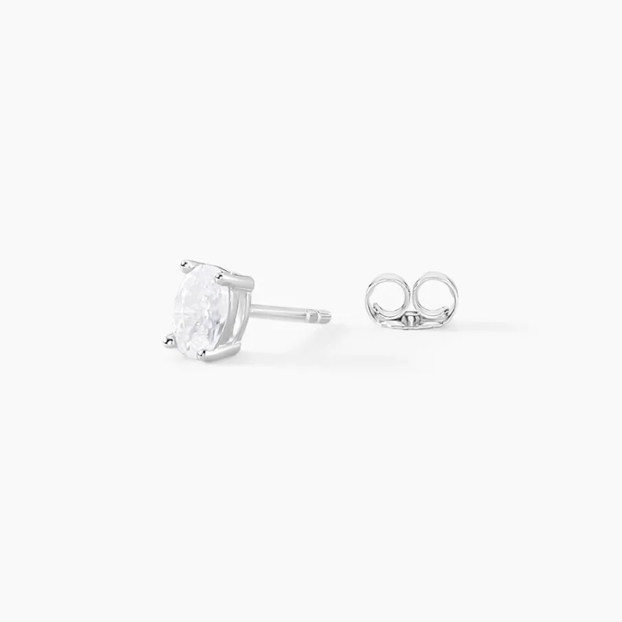 Boucles D’oreilles Puces Argent Blanc 925/1000 Puces Oxydes De Zirconium Formes Ovales 4x6mm