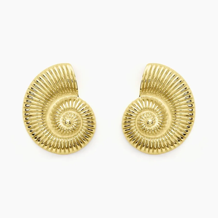 Boucles D’oreilles Puces Acier Inoxydable Jaune Coquillages