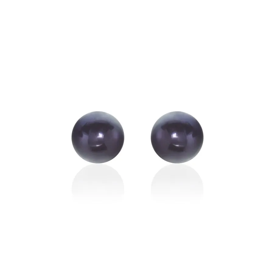 Boucles D’oreilles Or Jaune 375/1000 Perles De Culture Bouton Teintées Noires 8/8.5mm