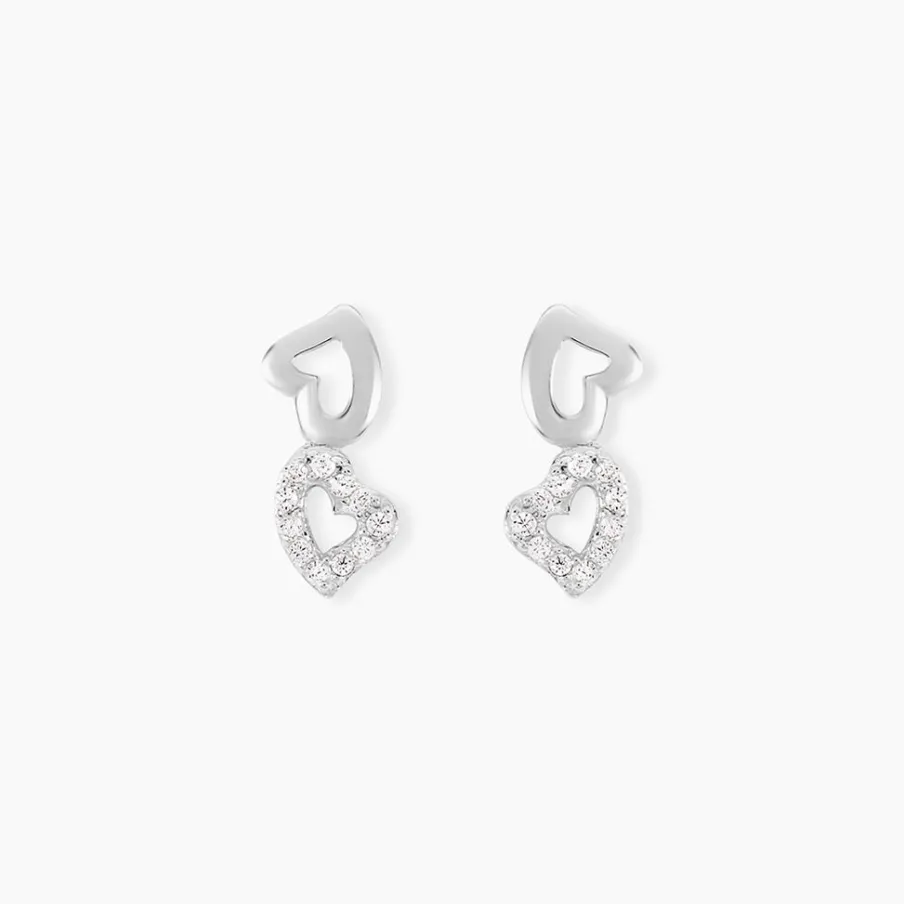 Boucles D’oreilles Puces Argent Blanc 925/1000 Double C艙urs Pavage Oxydes De Zirconium