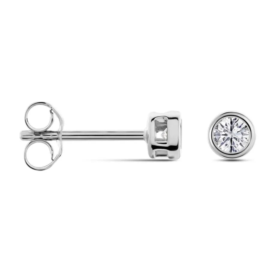 Boucles D’oreilles Puces Or Blanc 375/1000 Diamants Sertis Clos 0.10 Cts