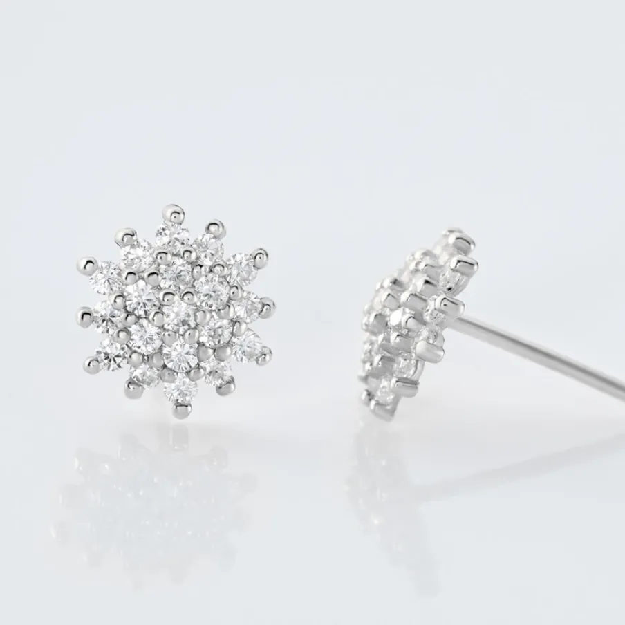Boucles D’oreilles Puces Or Blanc 375/1000 Oxydes De Zirconium Serti Pavage