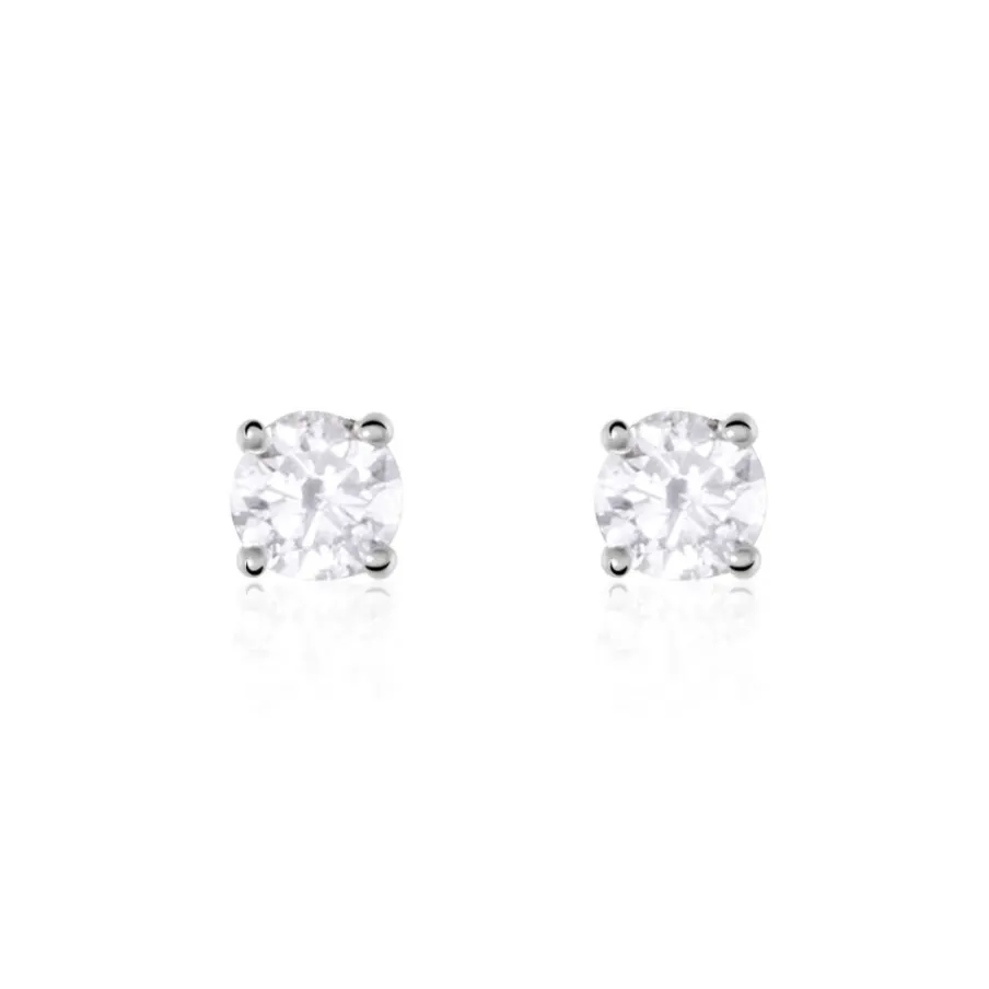 Boucles D’oreilles Or Blanc 750/1000 Puces Diamants 0.30cts Sertis 4 Griffes